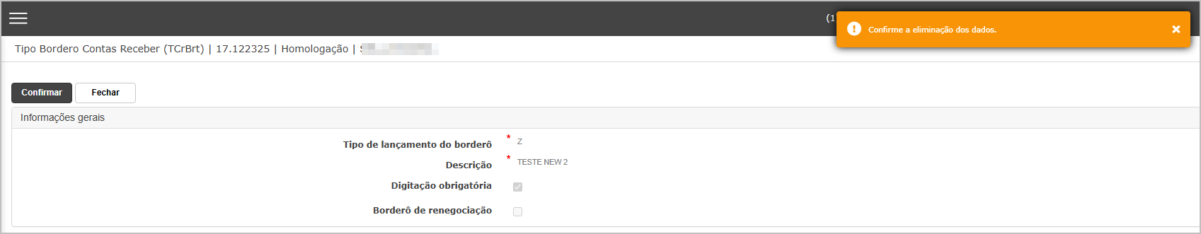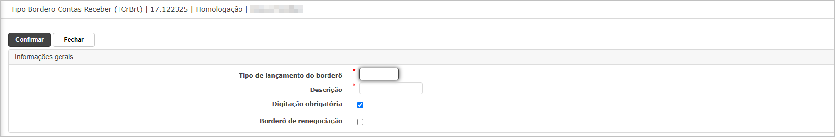 Digitação obrigatória: se marcado, obriga o usuário a informar dados manuais durante a geração do borderô.