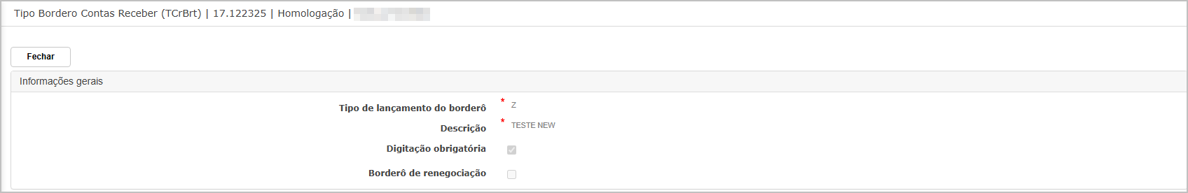 Borderô de renegociação: define se o tipo será utilizado especificamente em processos de renegociação.