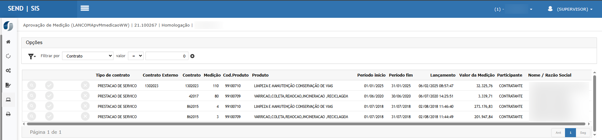 - Filtrar por contrato: Ajuda a localizar rapidamente medições específicas.