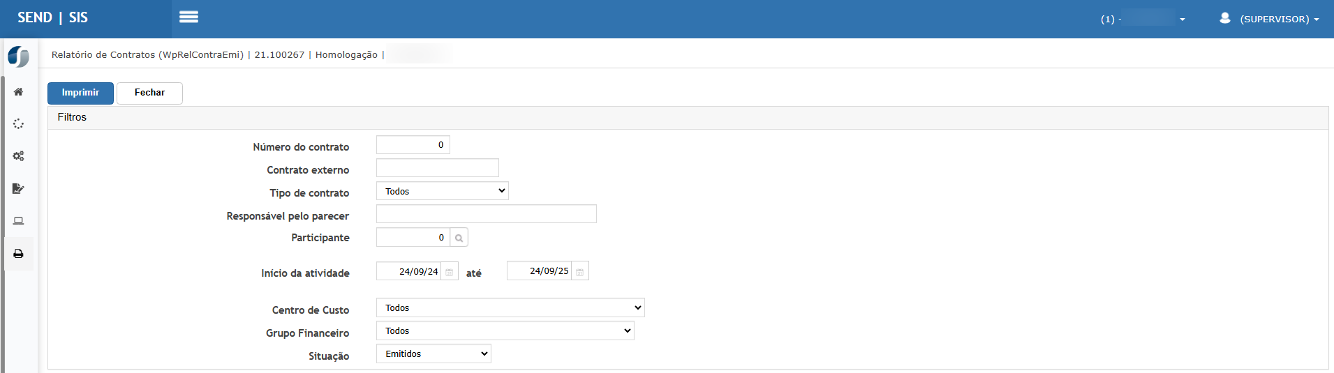 Imprimir: Gera o relatório com base nos filtros aplicados, exibindo os contratos emitidos.