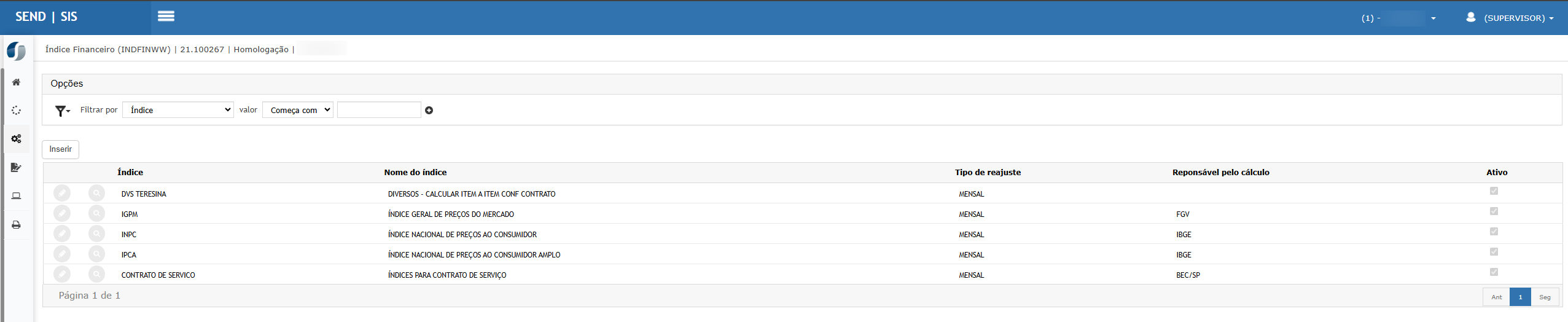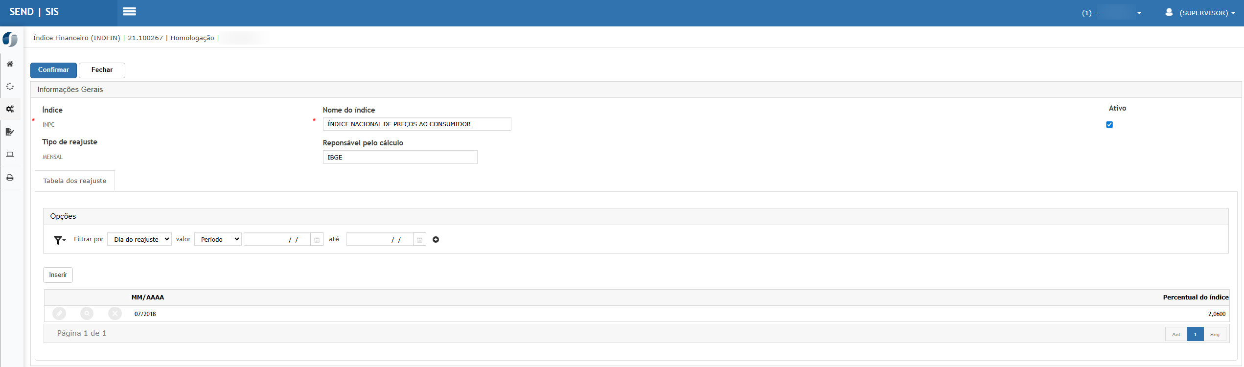 - Índices inativos não poderão ser utilizados em novos contratos.