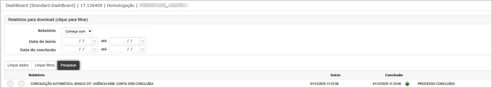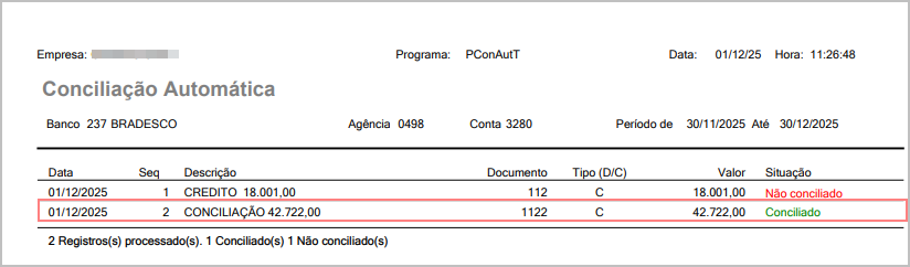 Relatório gerado - Conciliação Realizada