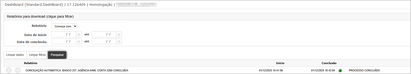 O sistema direcionara para Dashboard, onde é possível verificar se foi conciliado ou não.