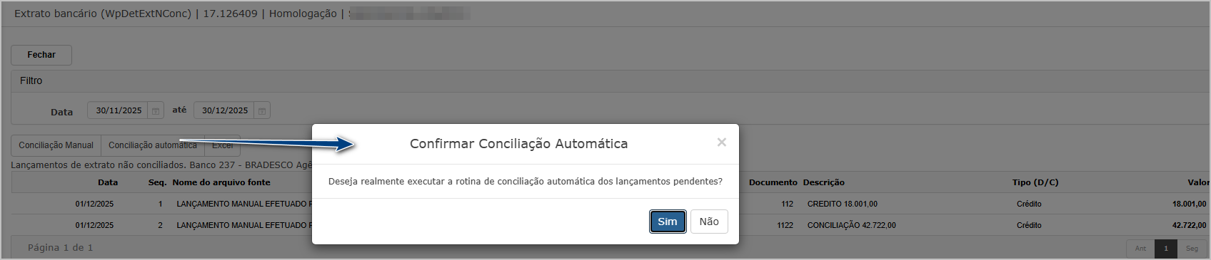 Executar conciliação automática