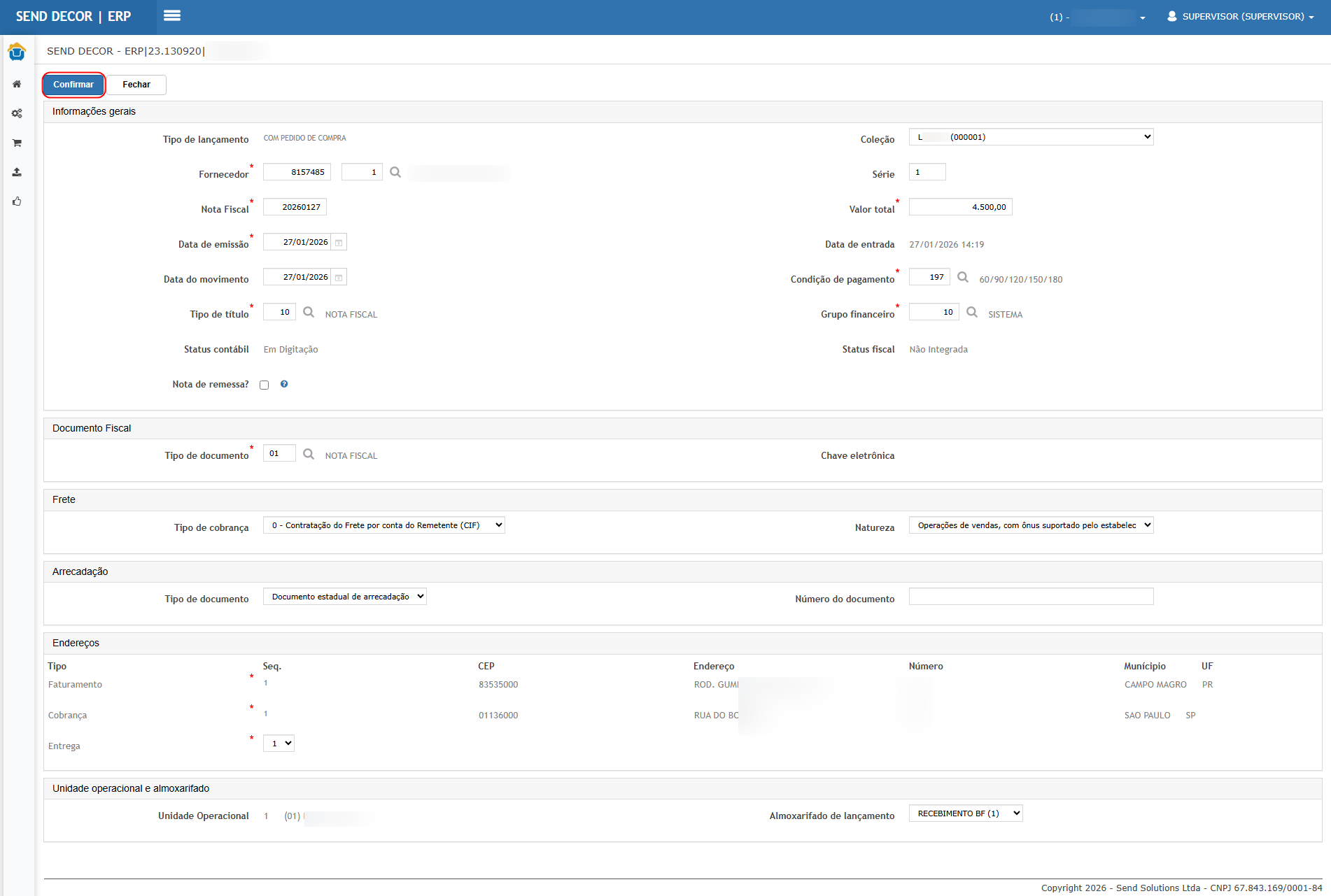 Preencher campos obrigatórios e clicar em Confirmar.