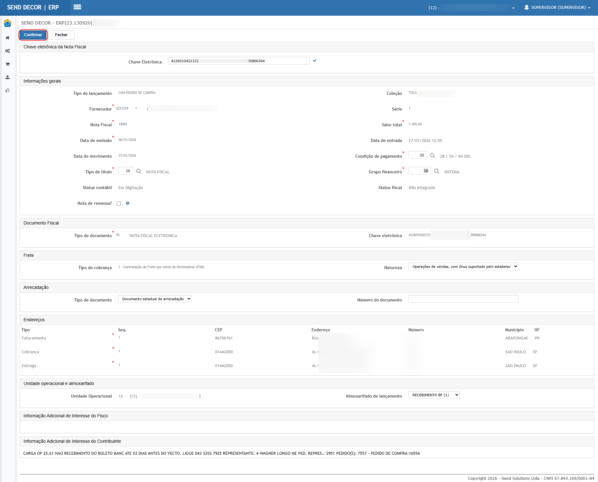 Voltar ao recebimento e atualizar a tela.