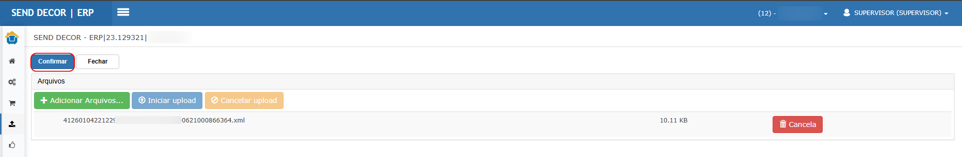 Clicar em Adicionar arquivos, selecionar o XML e Confirmar.