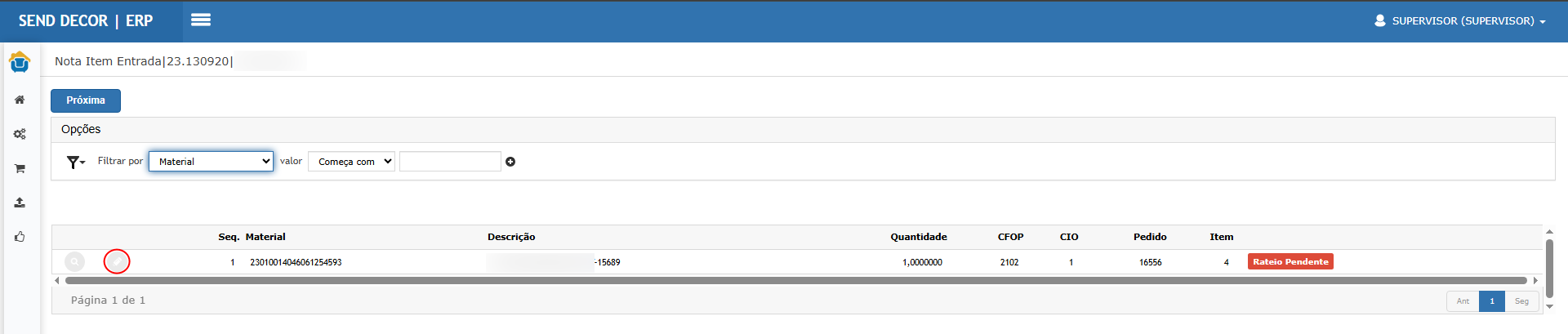 Informar/editar o Rateio do item (base de cálculo e confirmar).