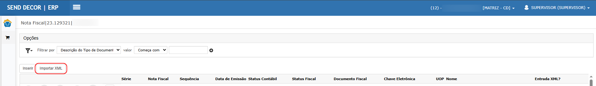 Recebimento via XML (Importar XML)
