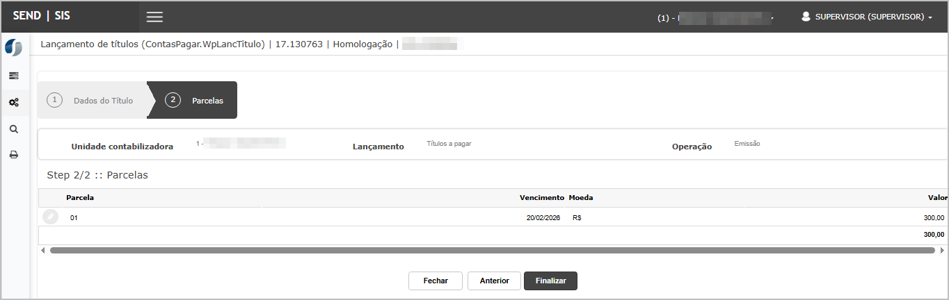 Na etapa de parcelas verifique os dados e finalize o lançamento.