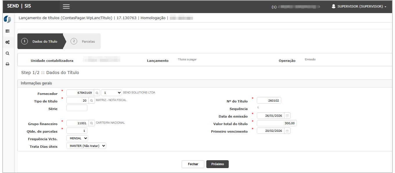 Ao abrir a tela, insira os dados do título e clique em Próximo.