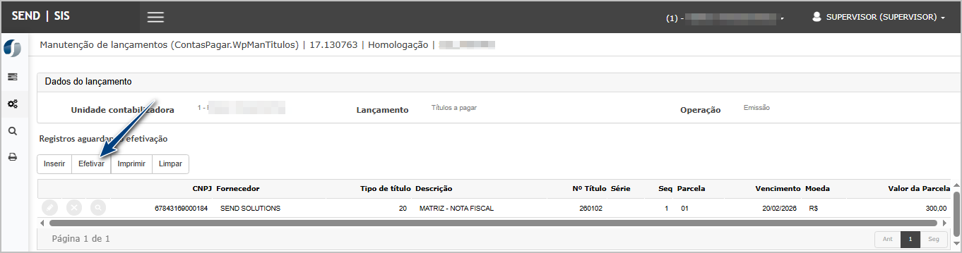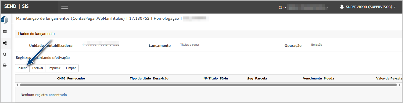 Acessar Contas a Pagar > Manutenções > Lançamentos