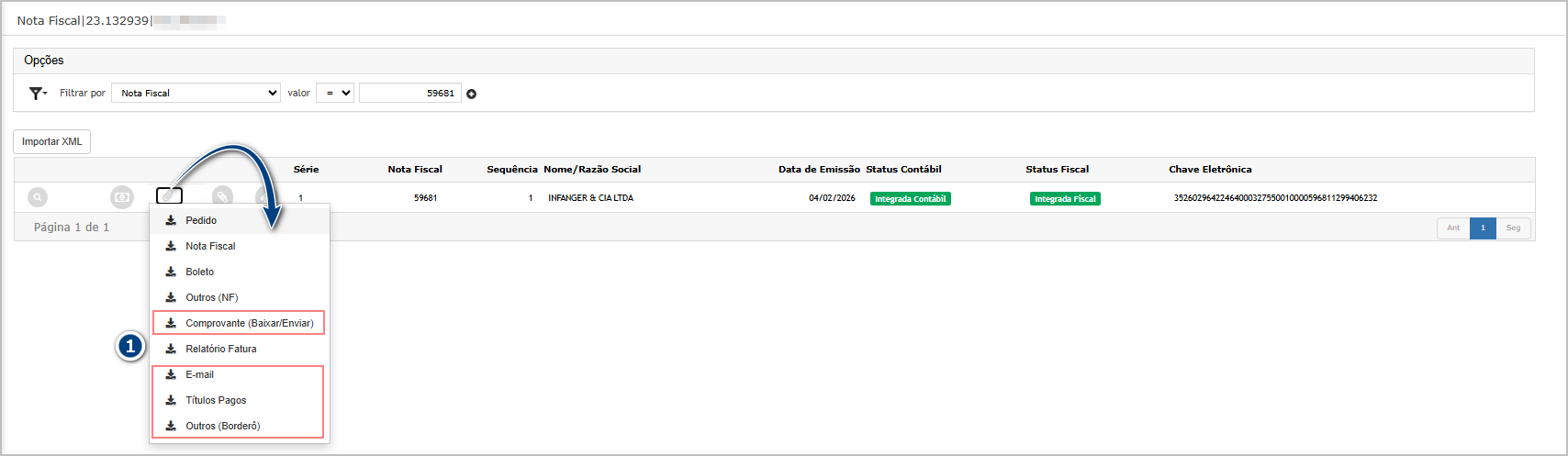 Localizar a nota vinculada à fatura do borderô.