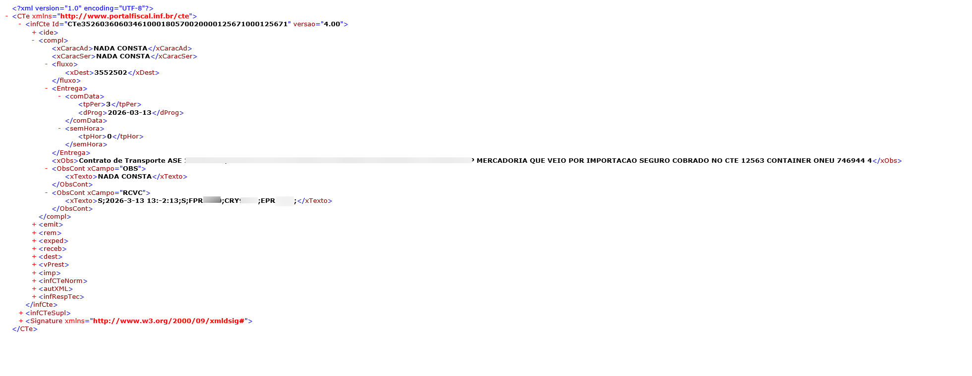 XML deve permanecer válido conforme schema CT-e 4.00.
