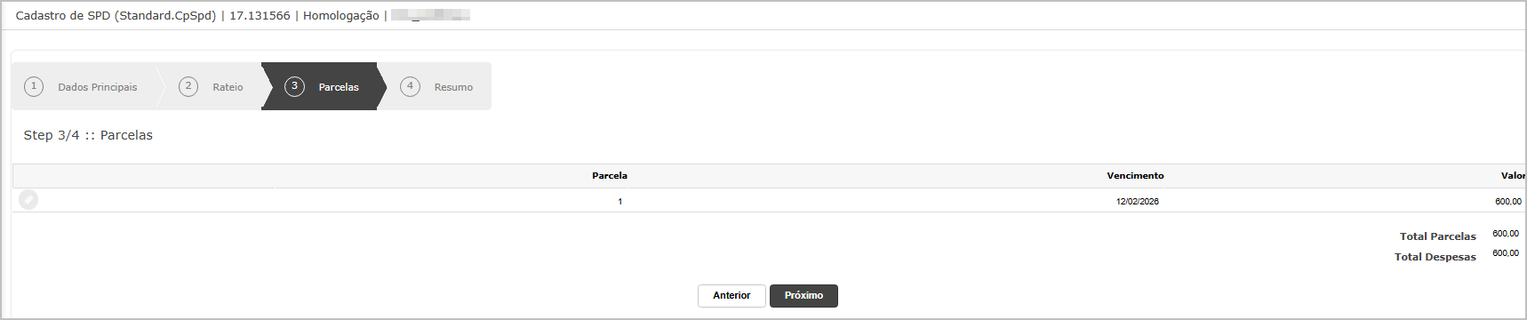 Acessar a tela de Solicitação de Pagamento de Despesas – Homologação.