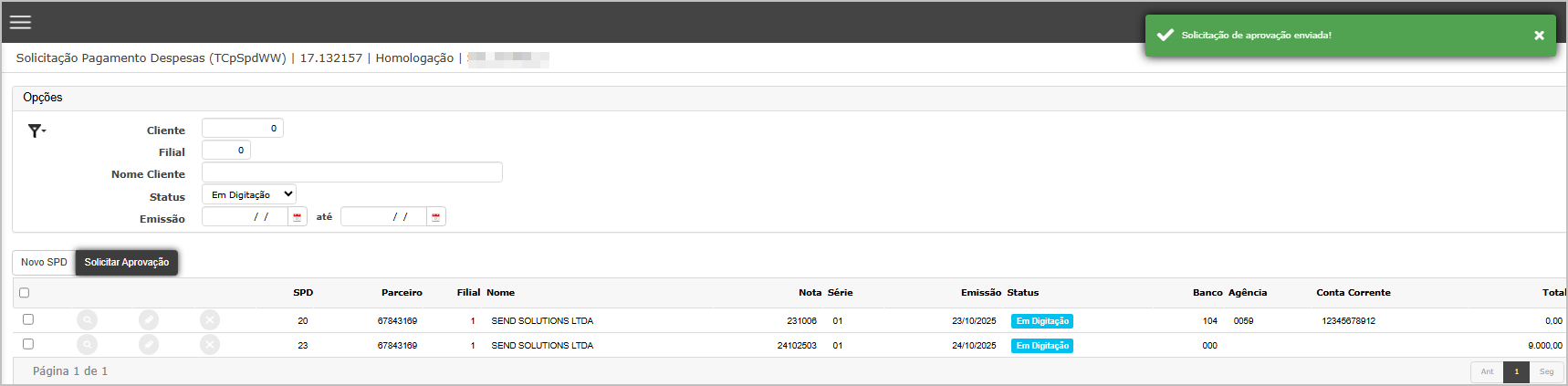 SPD enviado para aprovação com sucesso.