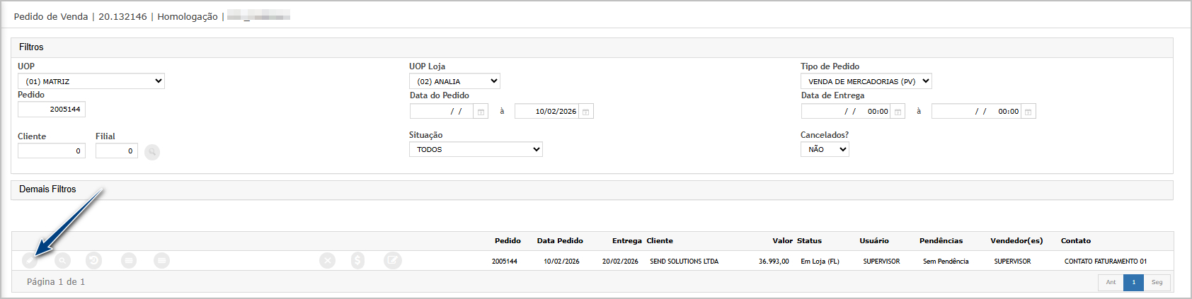 Após inserir, confirme para gravar o valor.Na edição do pedido, clique em editar. Neste momento valor adicionar o desconto no pedido.
