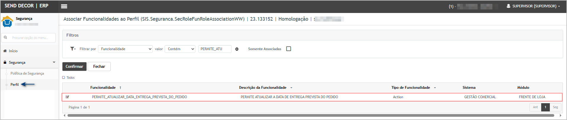 - funcionalidade PERMITE_ATUALIZAR_DATA_ENTREGA_PREVISTA_DO_PEDIDO, deve estar marcada para o perfil de vendedor.