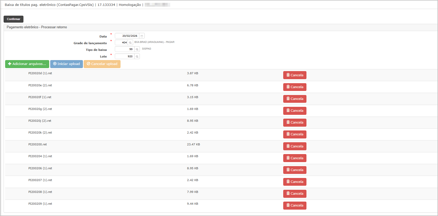 4. Selecionar arquivo de retorno válido do Bradesco (.RET)