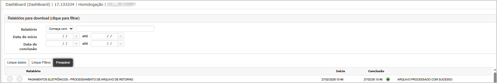 7. Validar relatório de processamento