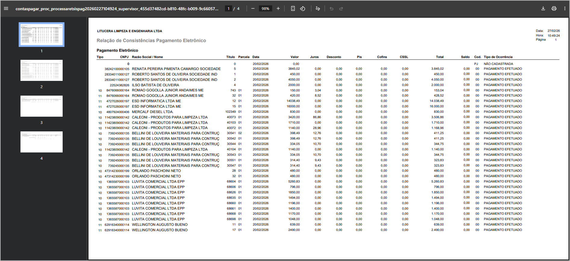 • Títulos com status atualizado para Pagamento Efetuado.