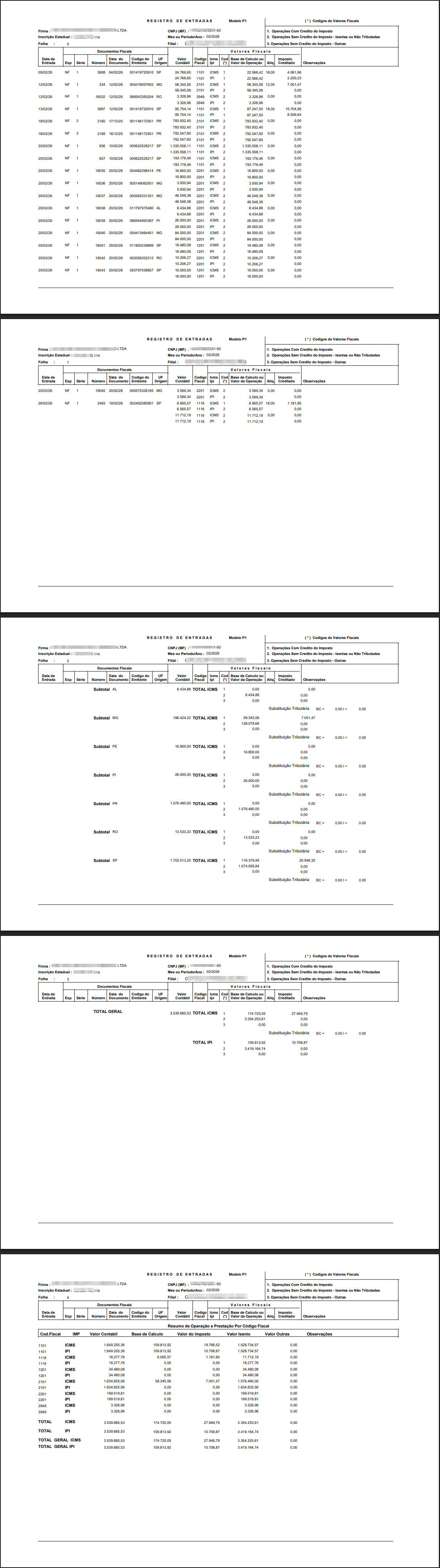 OS 103302 - CORREÇÃO - FISCAL - RELATÓRIO - REGISTROS DE ENTRADAS/SAÍDAS COM INFORMAÇÕES INCORRETAS