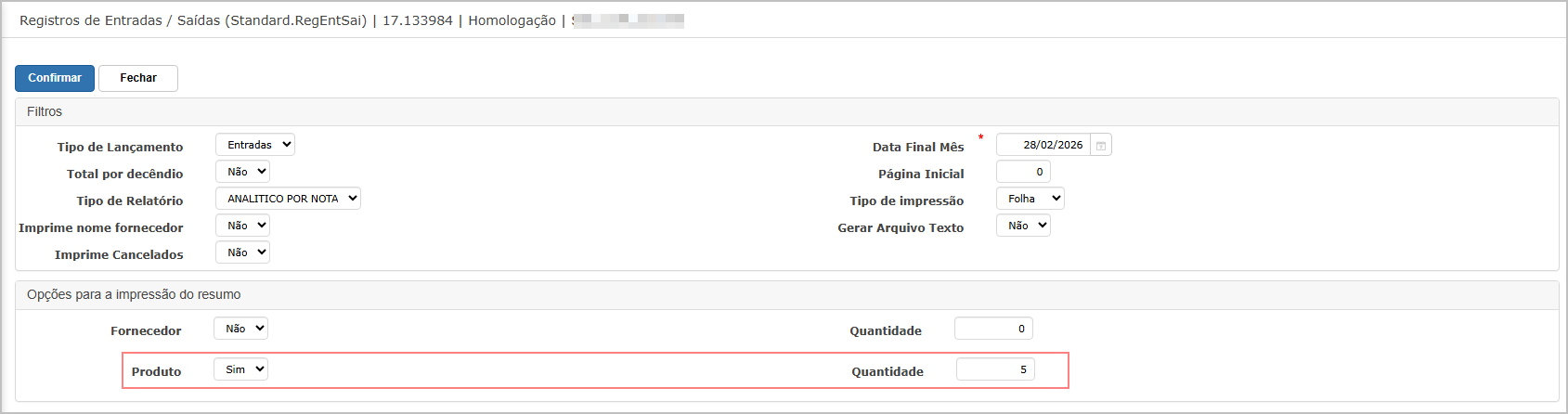 Ao acessar a tela, informe os filtros e clique em Confirmar.