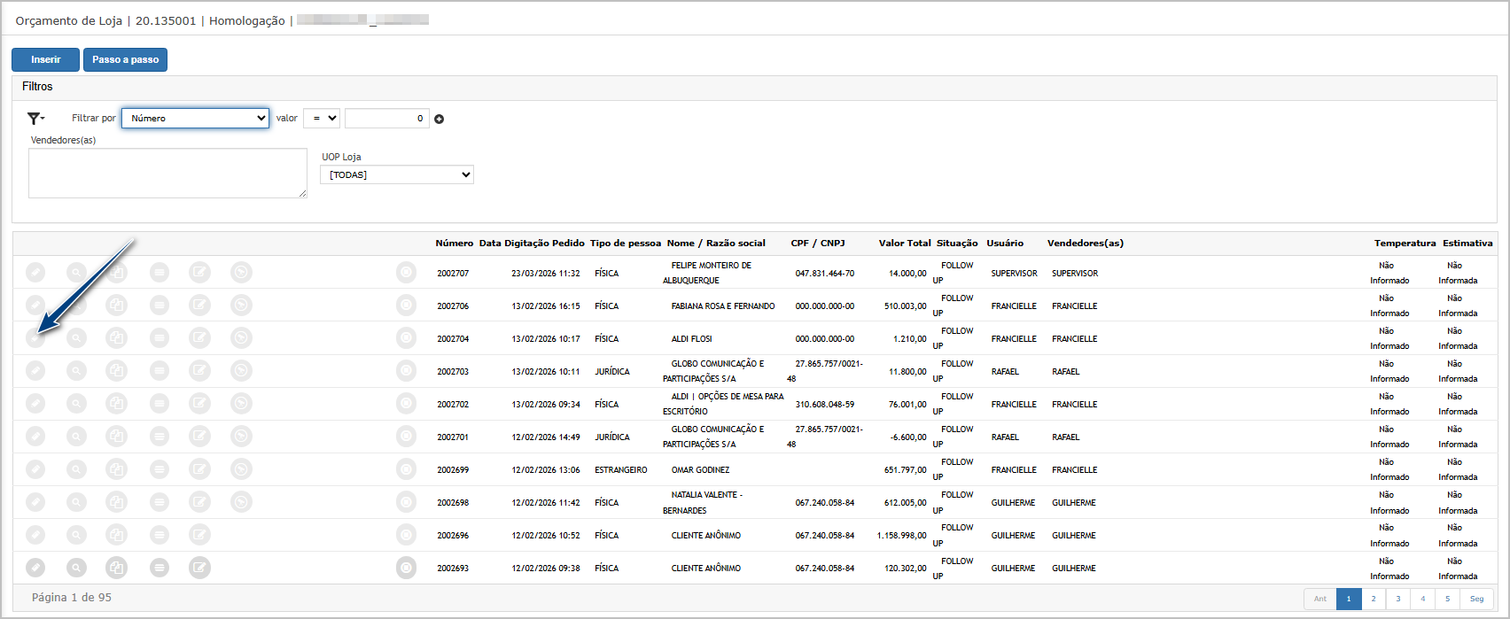 Na tela principal, insira ou edite um orçamento. Neste exemplo vamos editar um orçamento.