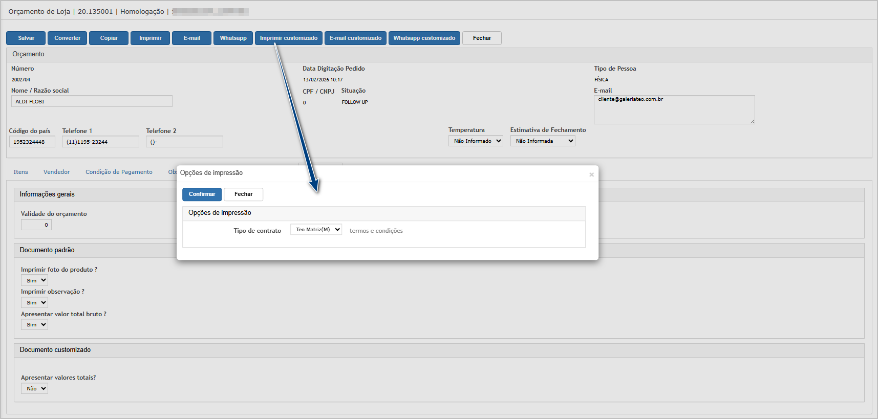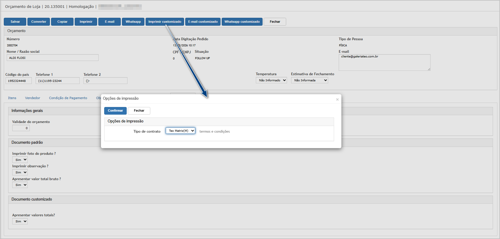 Na sequencia, clique em Imprimir customizado.