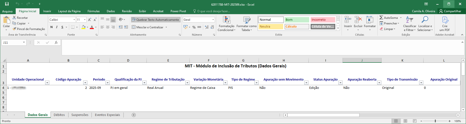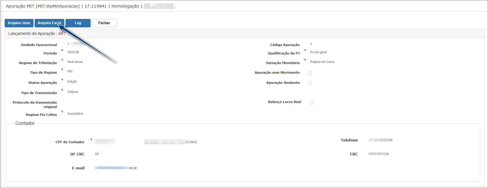 Ao abrir a tela do período escolhido, clique no botão Arquivo Excel.