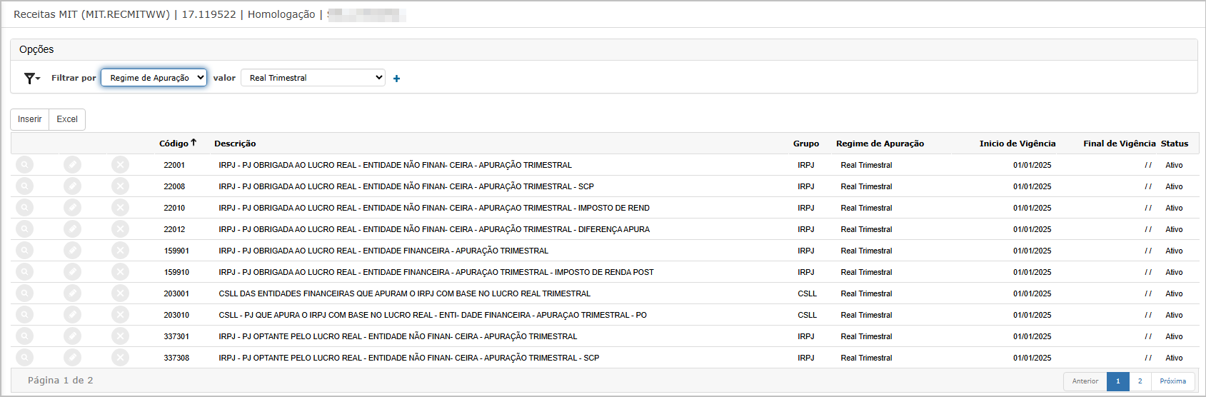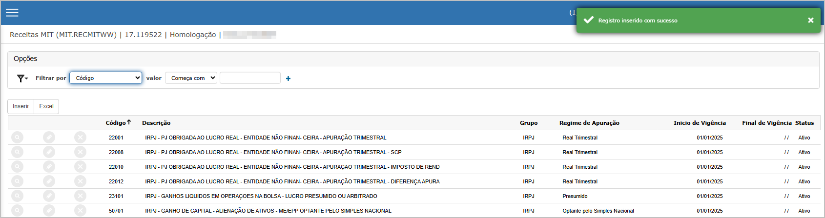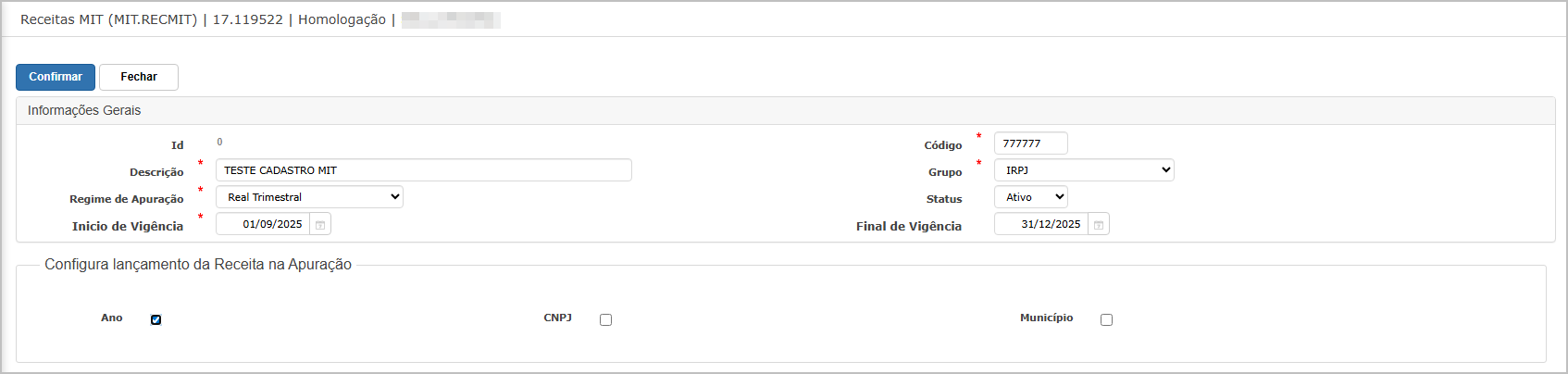 O MIT – Módulo de Inclusão de Tributos é uma funcionalidade do módulo Fiscal do ERP que possibilita o registro e a apuração de tributos conforme os parâmetros definidos pela Receita Federal. A funcionalidade permite que os usuários efetuem cadastro de receita, lançamentos de apuração e, ao final, gerem o arquivo JSON no layout oficial exigido para upload no aplicativo MIT da Receita Federal.