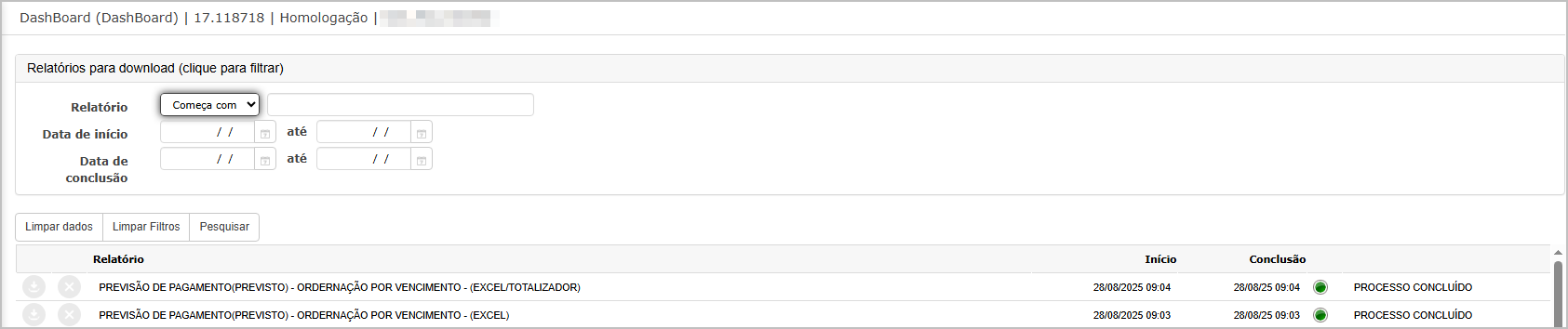 - Funcionalidade Relatório Customizado Previsão Pgto Analítico, precisa estar ativa, caso necessário entre em contato com a Send Solutions.