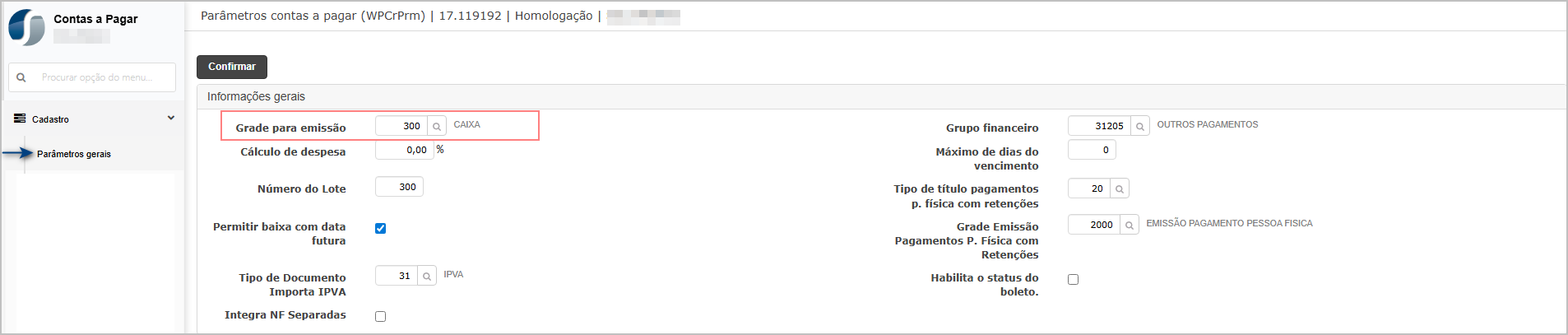 Informe a grade de emissão e os demais dados, na sequência clique em Confirmar.