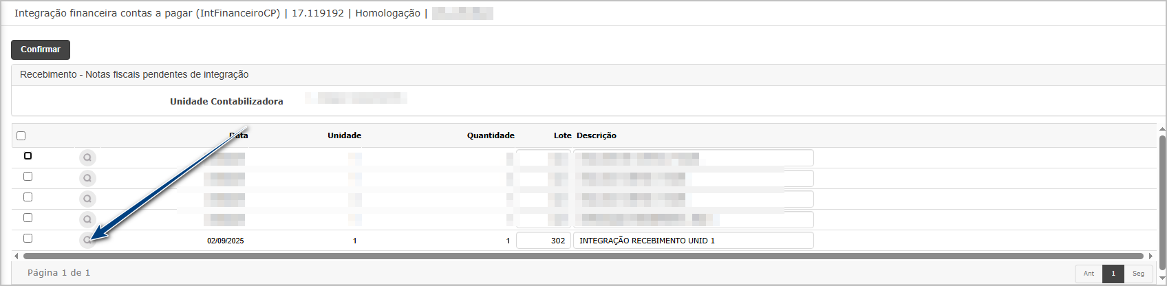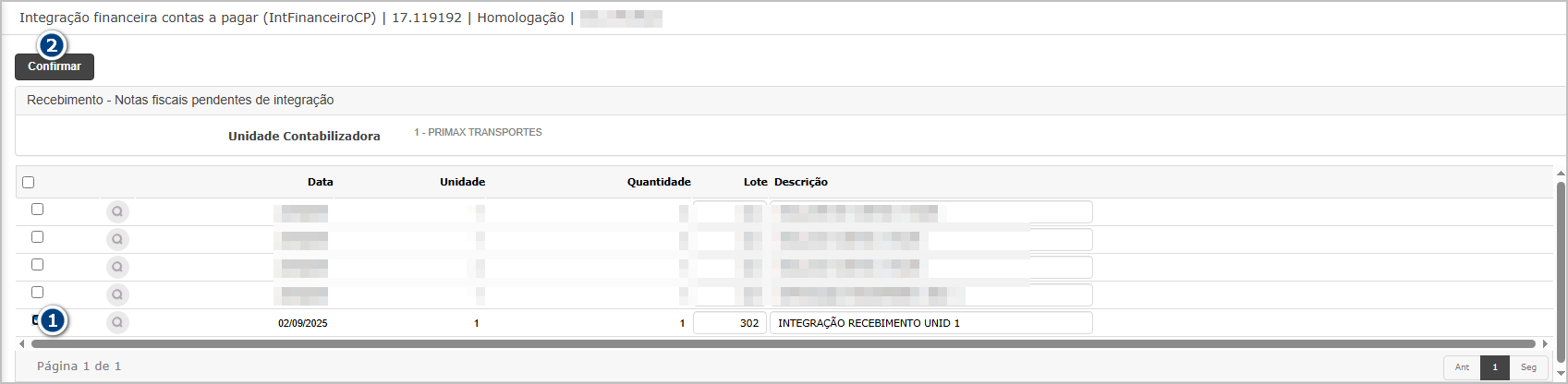 Na tela de integração, consulte a notas pendentes de integração.