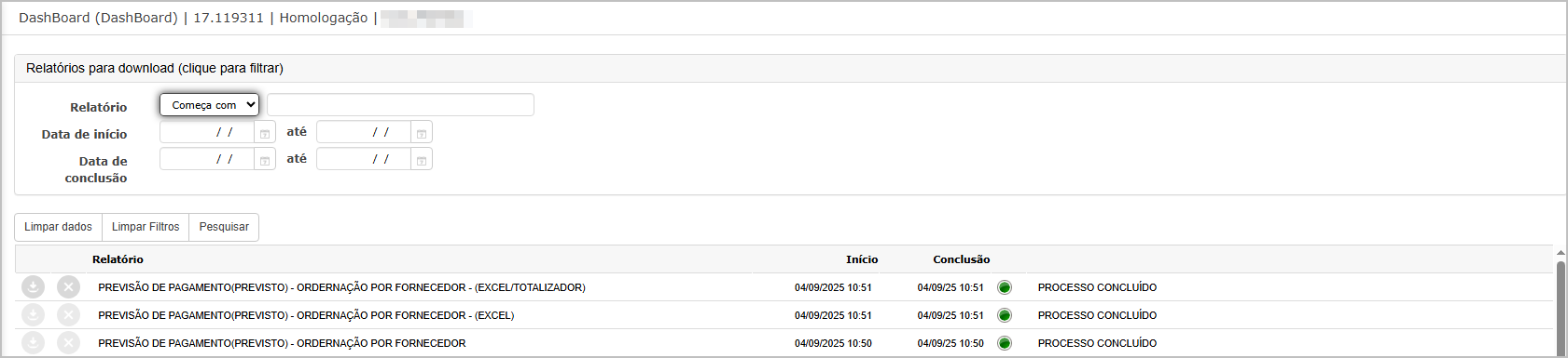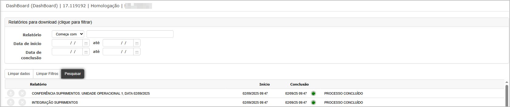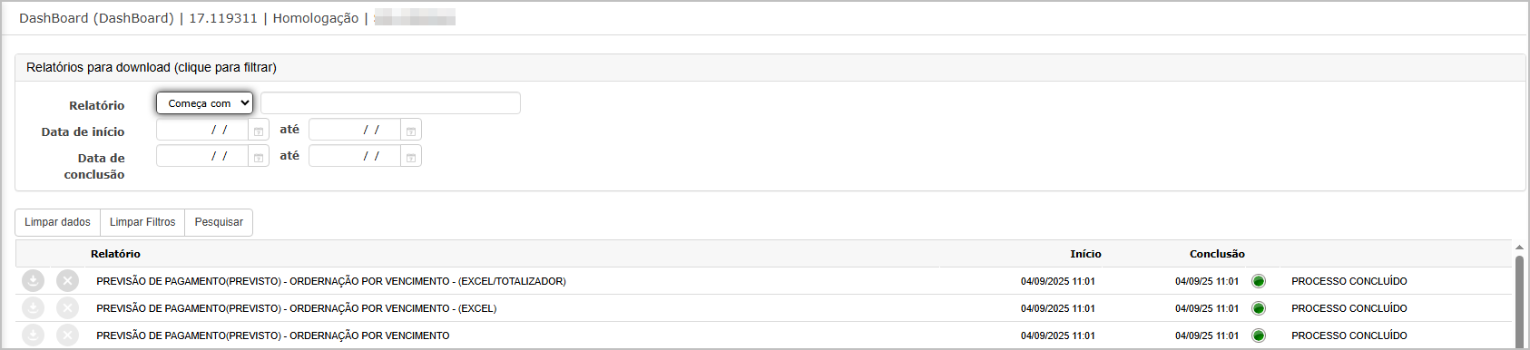 O sistema irá direcionar para o dashboard, onde será possível fazer o download do relatório.