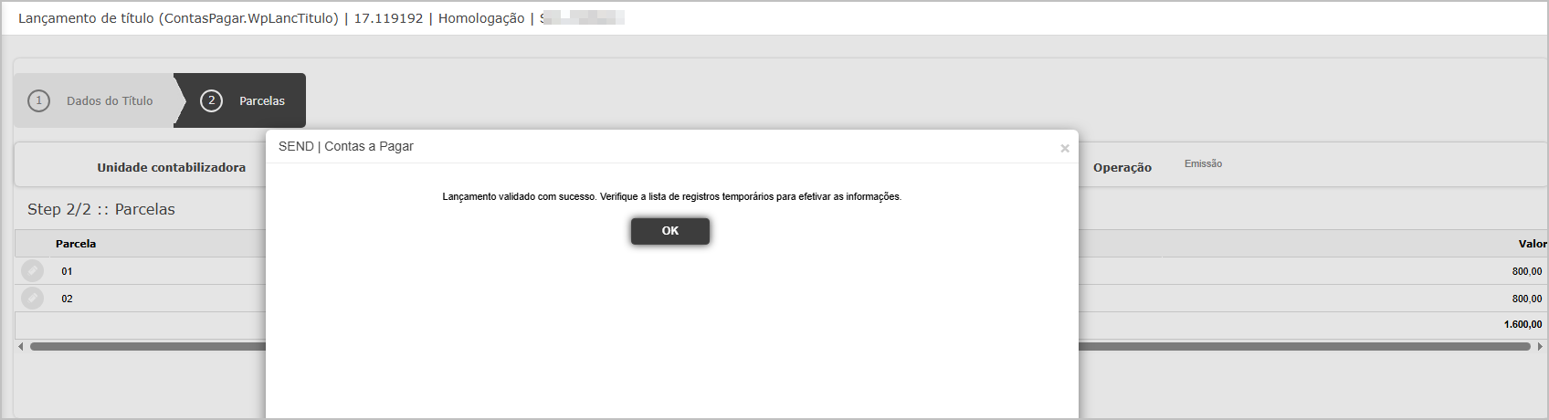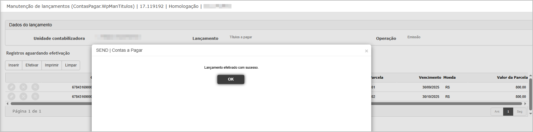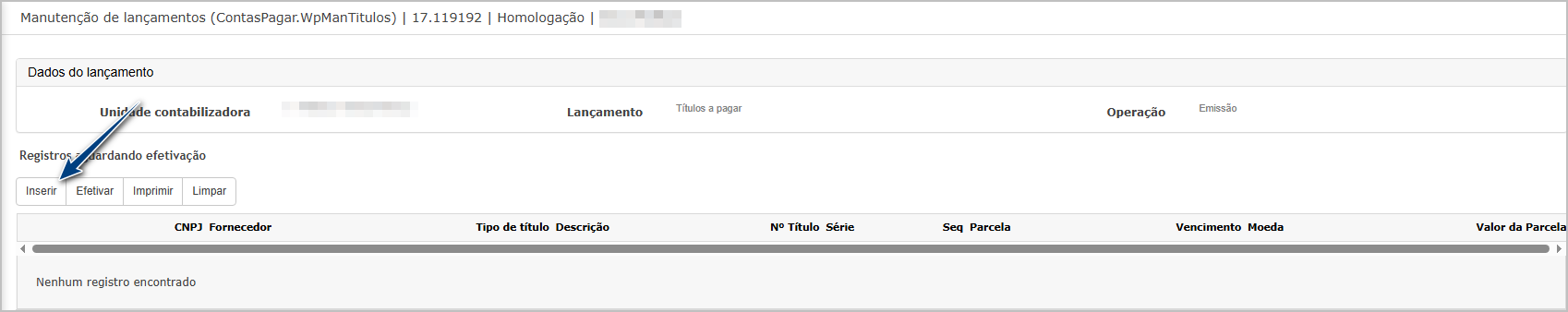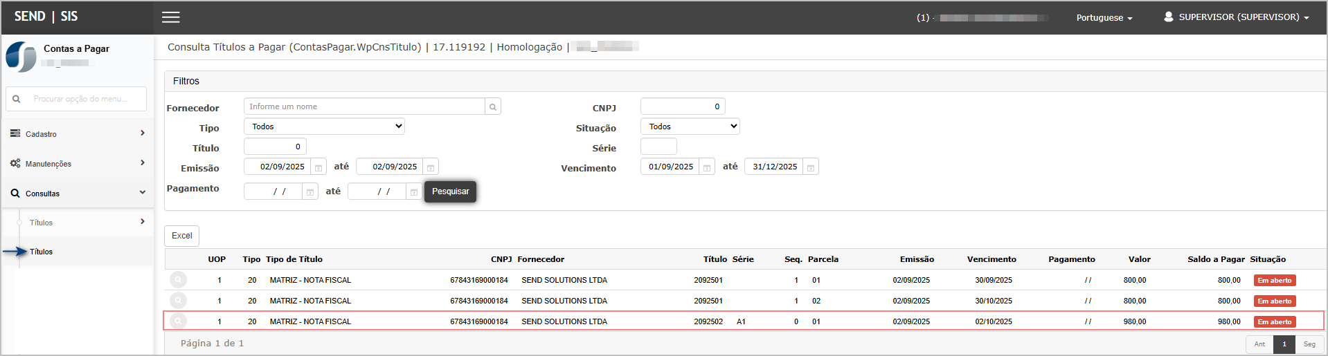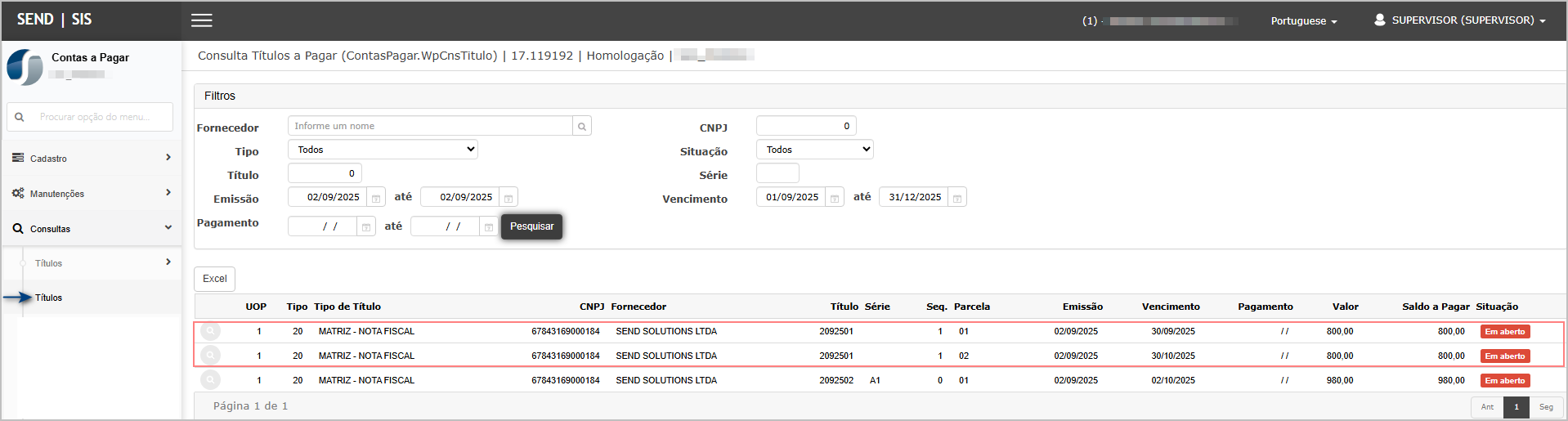 - Abrir a Consulta de Títulos e localizar o título recém-criado.