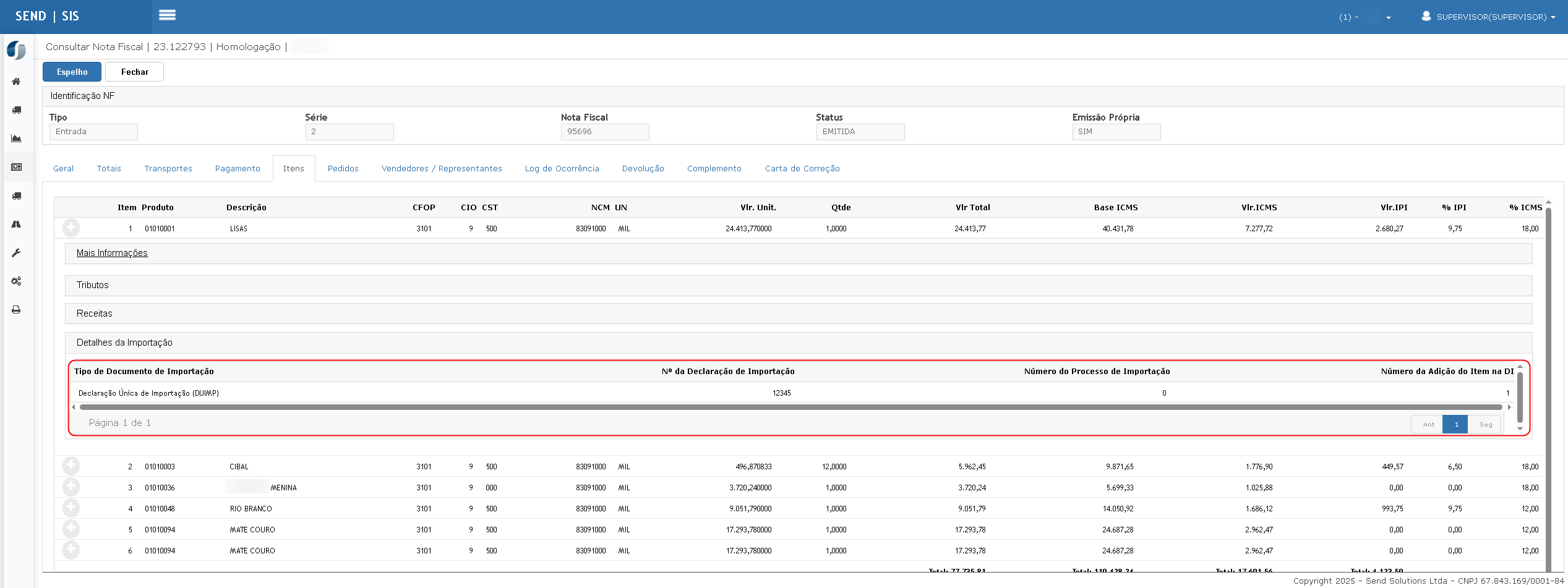 exibam as informações na consulta da NF (aba Detalhes da Importação);