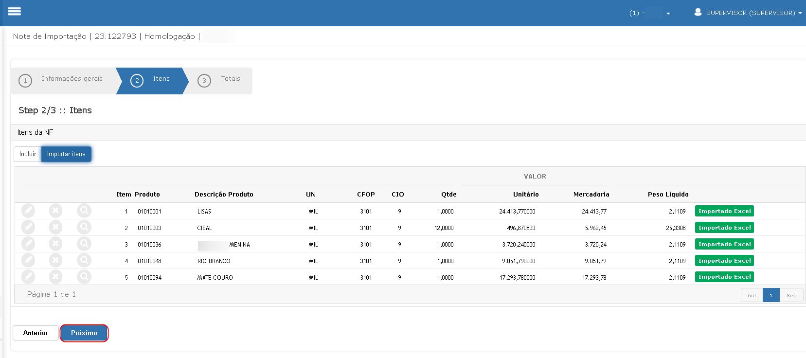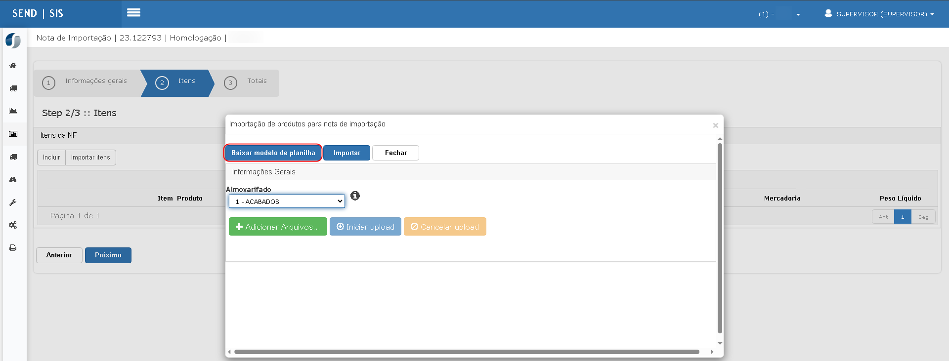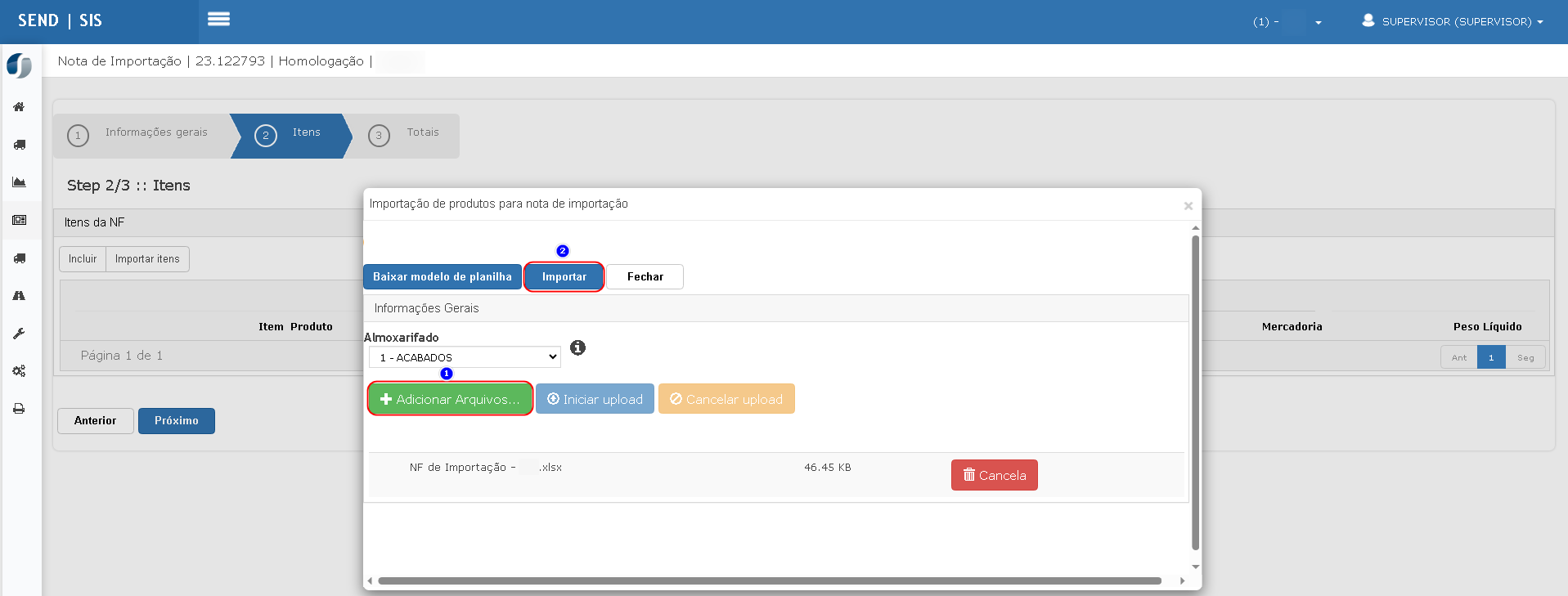 Ir para Step 2/3 – Itens e clicar Importar itens