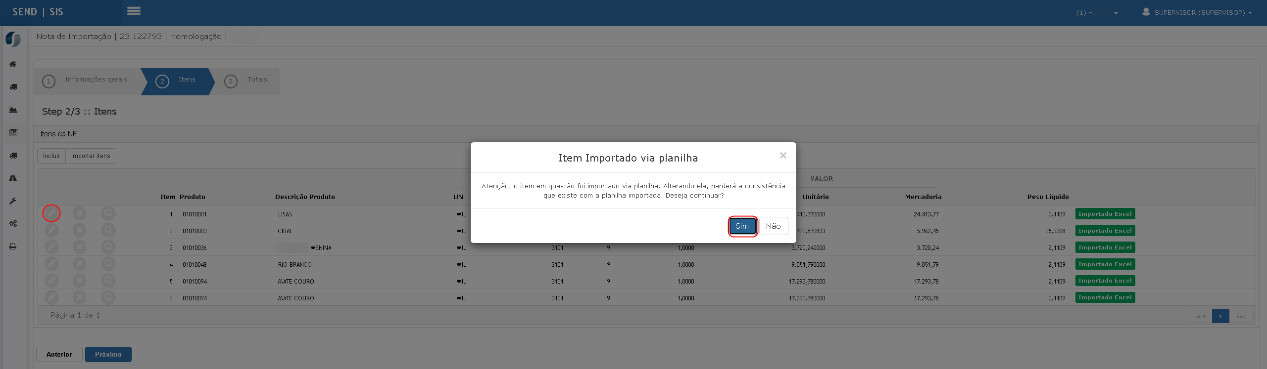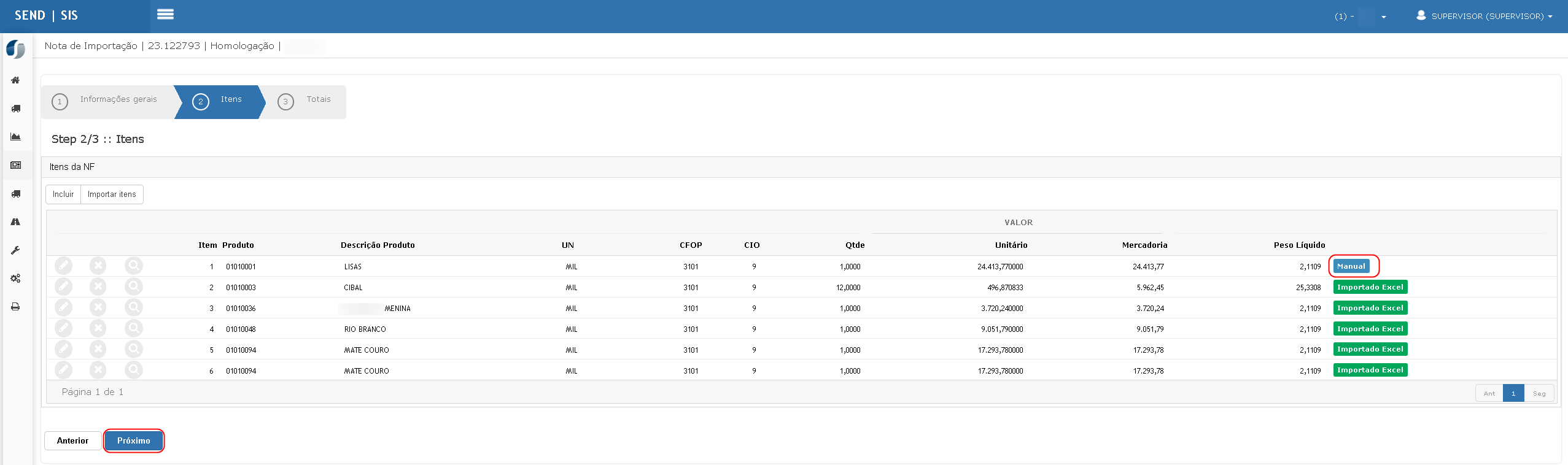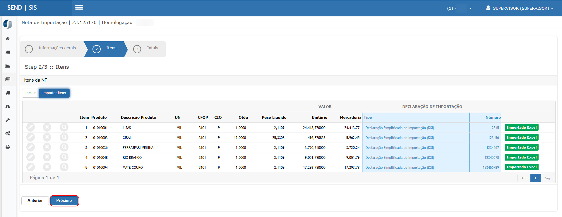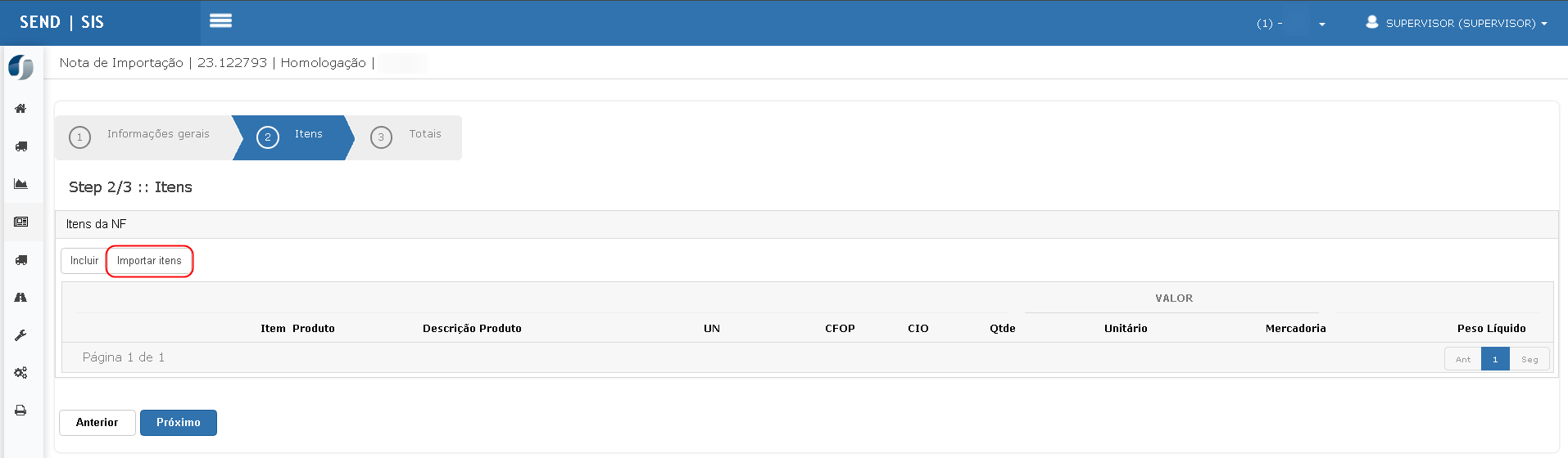 Ir para Step 2/3 – Itens e clicar Importar itens