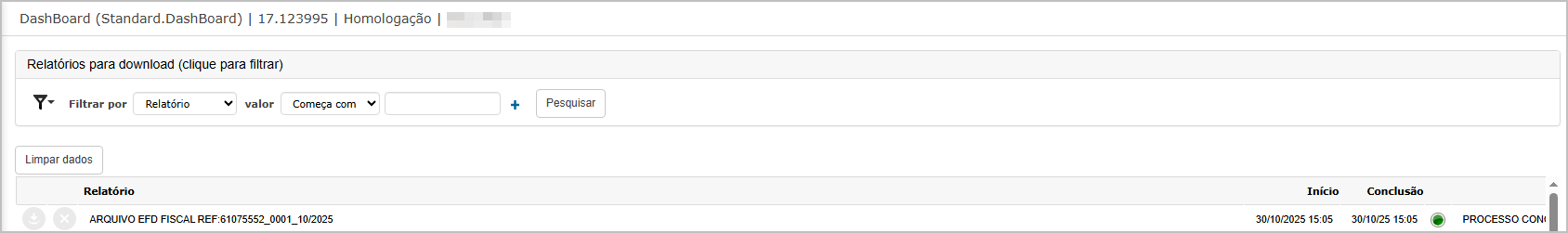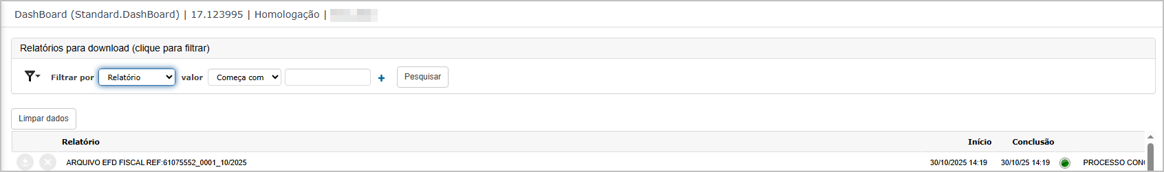 O sistema irá direcionar para dashboard, onde será possível acompanhar o processamento e no final será gerado o arquivo SPED Fiscal.