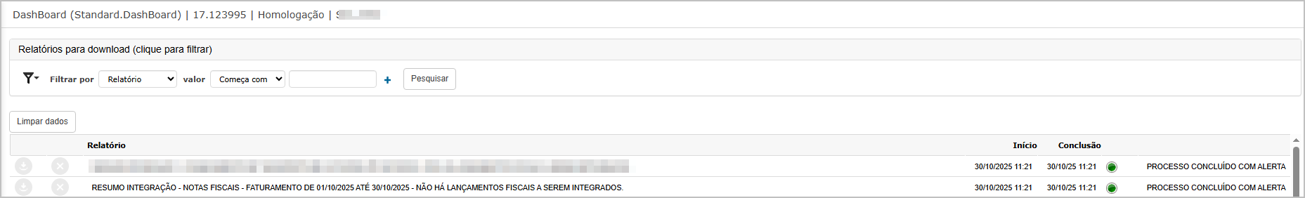 O sistema irá direcionar para dashboard, onde será possível acompanhar o processamento e no final será gerado o relatório de inconsistência.