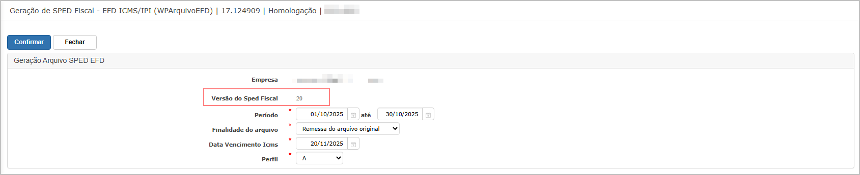 Configurar a versão do SPED Fiscal para 20. Essa versão deve ser utilizada após 01/01/2026.