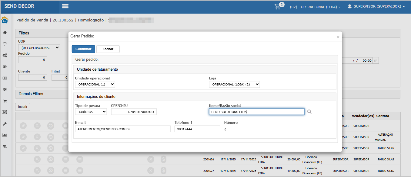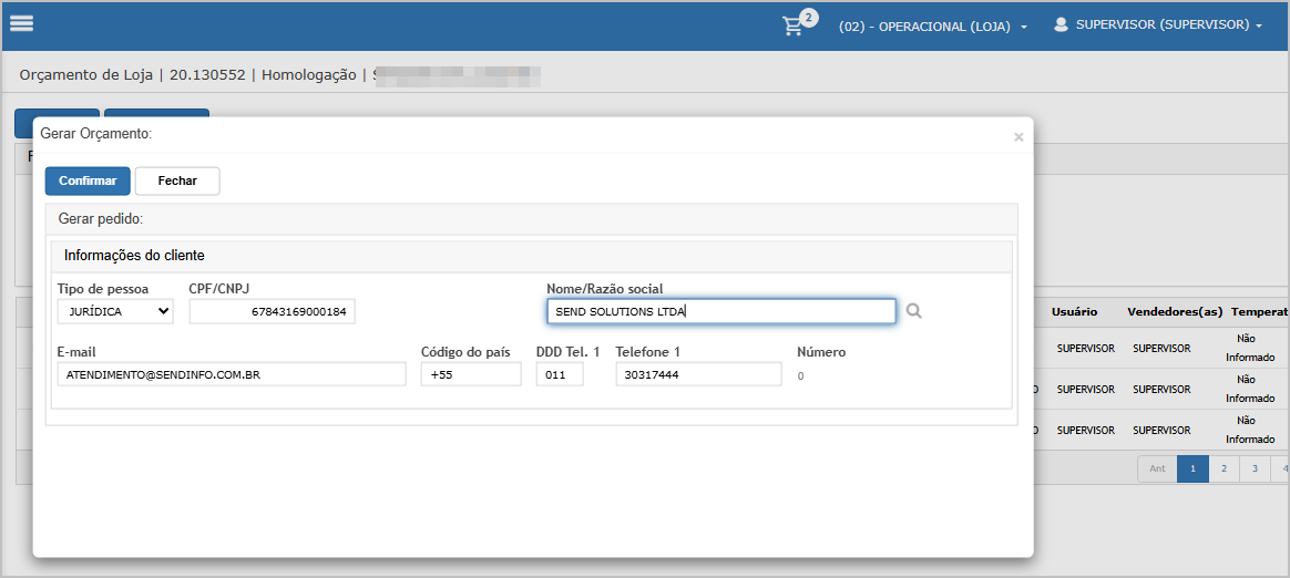 Informe os dados do cliente e clique em Confirmar.