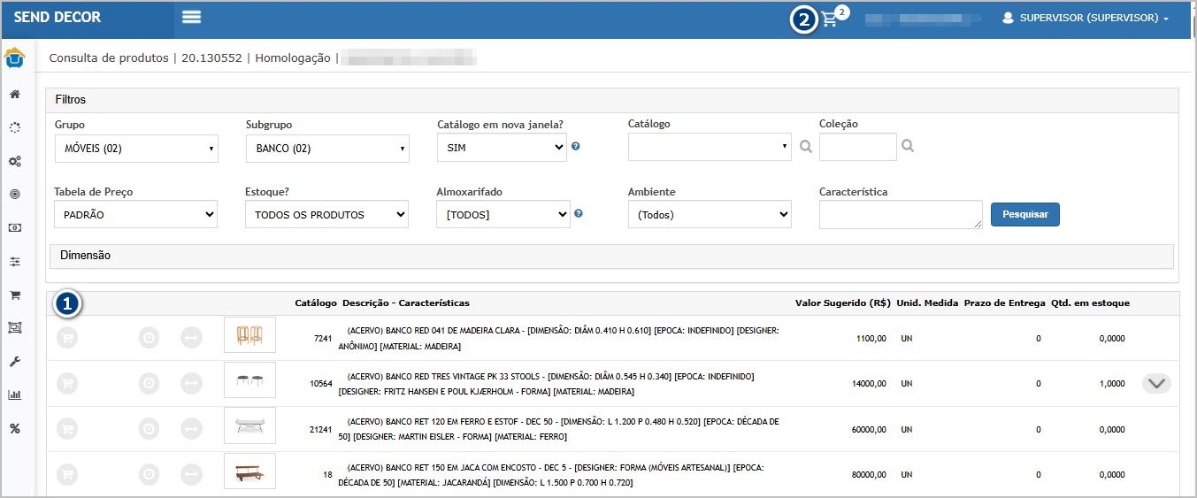 Clique no ícone de carrinho (1), que o carrinho da parte (2) superior vai ser atualizado.
