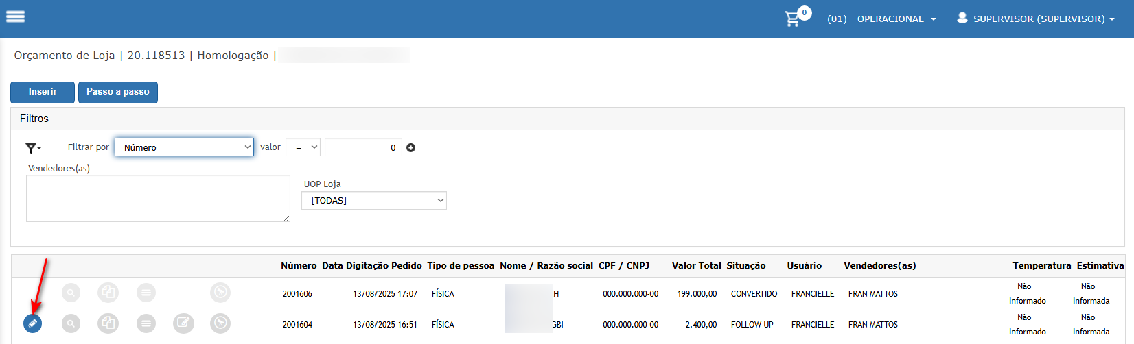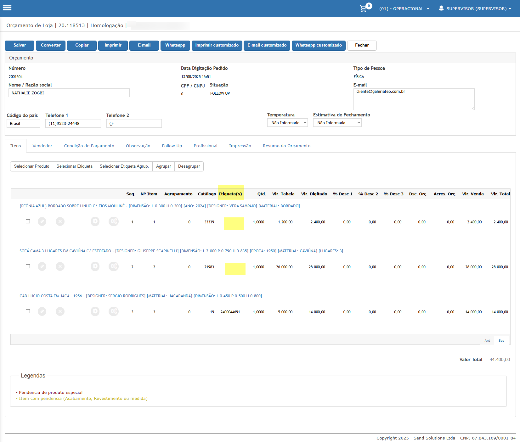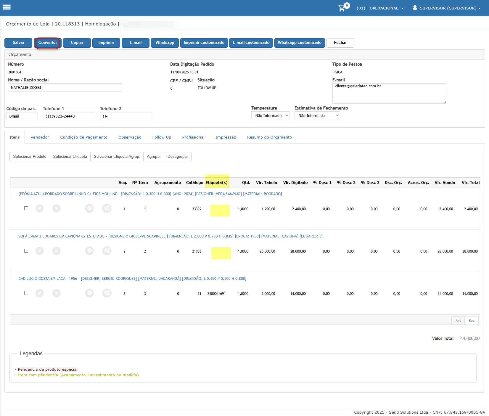 Neste cenário iremos gerar um novo orçamento e converter o pedido sem etiquetas;