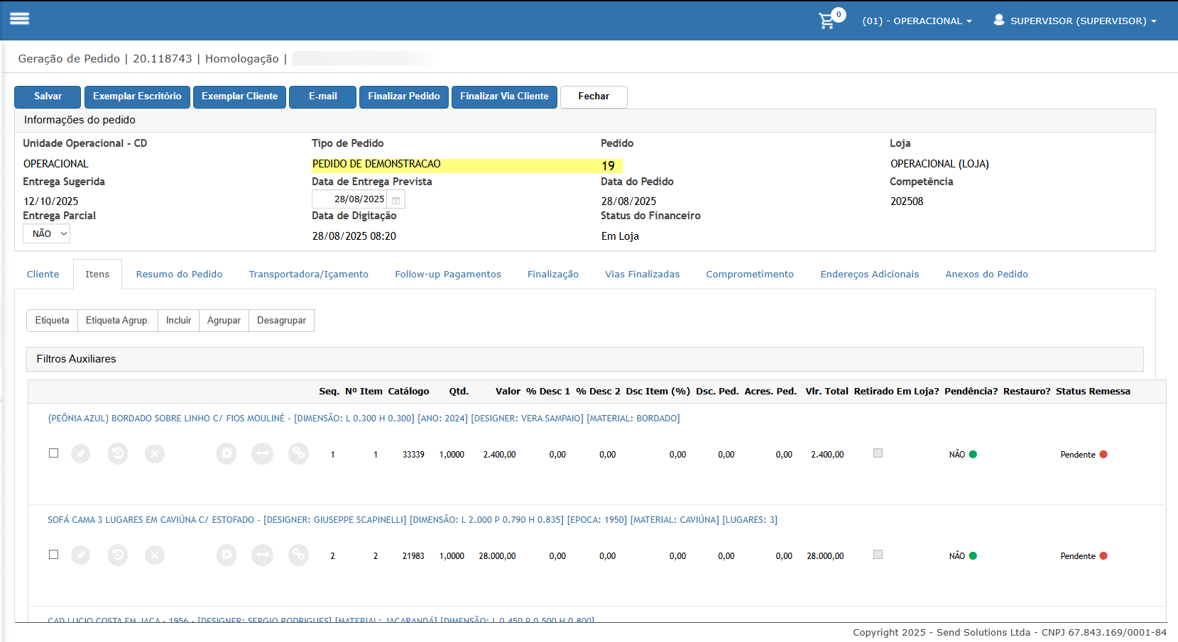 OS 80268 - MELHORIA - SIS/WEB - SENDDECOR - PEDIDO DE DEMONSTRAÇÃO SEM ETIQUETA