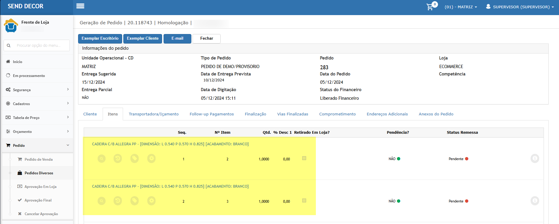 - Necessário o ambiente estar atualizado com a versão do módulo FaturamentoDecor de número 118743 ou superior;