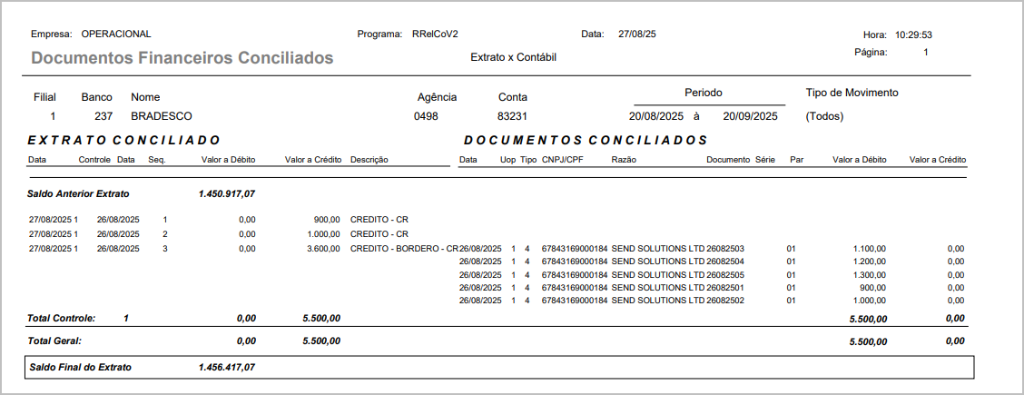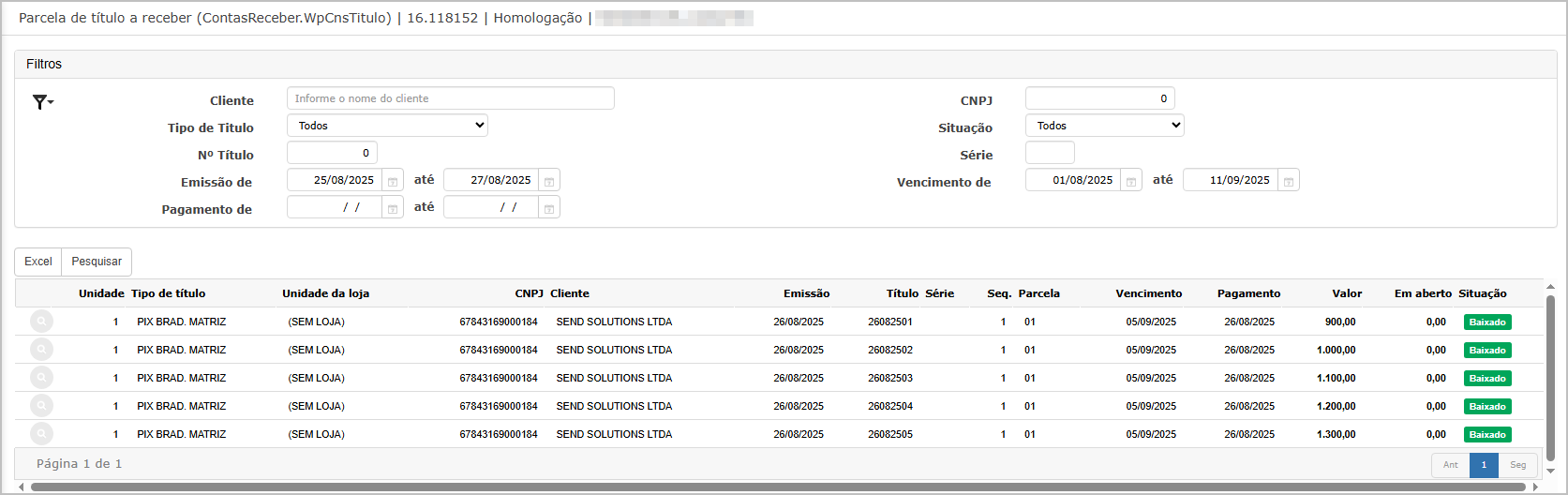 Cenário 1: Conciliação de Títulos - Contas a Receber