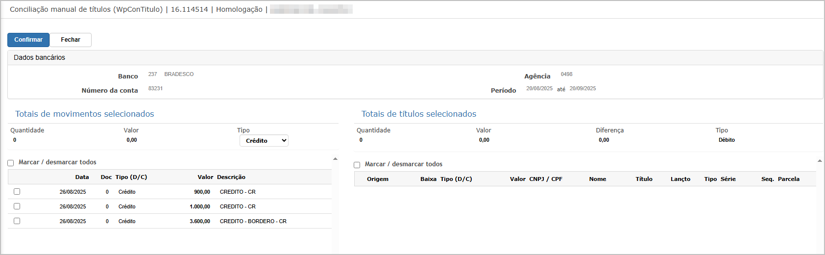 Essa solicitação visa, ajustar o processo de conciliação bancária para que todos os títulos estejam disponíveis para conciliação, corrigindo falhas anteriores nas quais alguns títulos não eram exibidos.