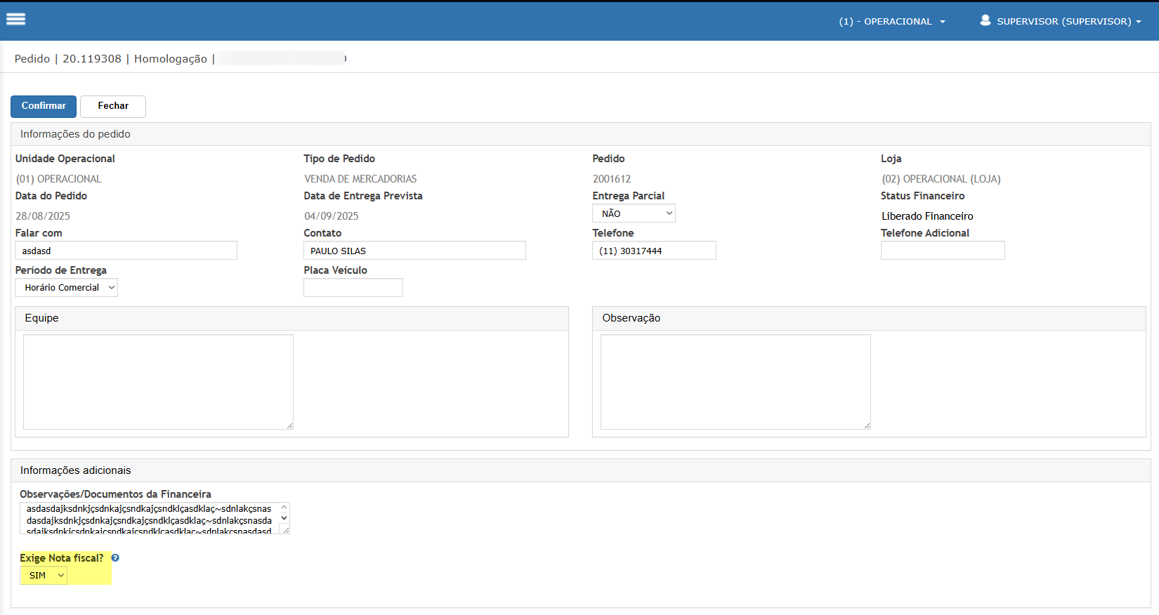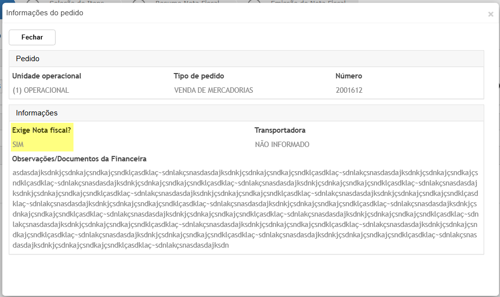 - Esta solicitação tem por objetivo adicionar o campo informativo se precisa ou não emitir nota fiscal (campo somente de visualização);